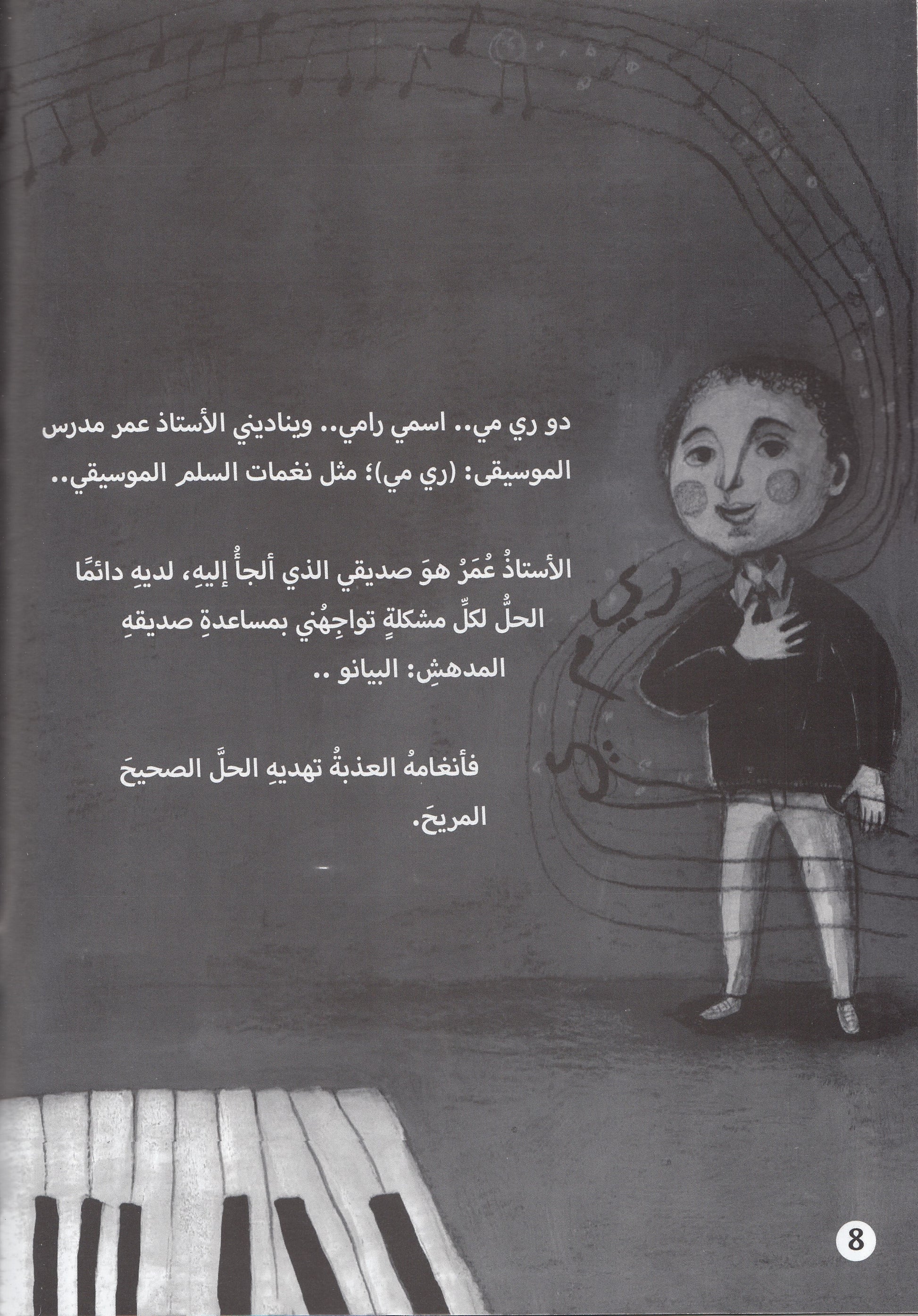 قصة تغرس قيم حب الخير والجمال في نفوس الأطفال . ربما لحضور الدافيء, ربما لصوته العذب, ربما الان أصباعه البيضاء والسوداء تستوعب جميع تناقضات العالم! هل عرفتم لماذا أحبه؟ لأنه يعلمني كل يوم معني جديدا للحياة