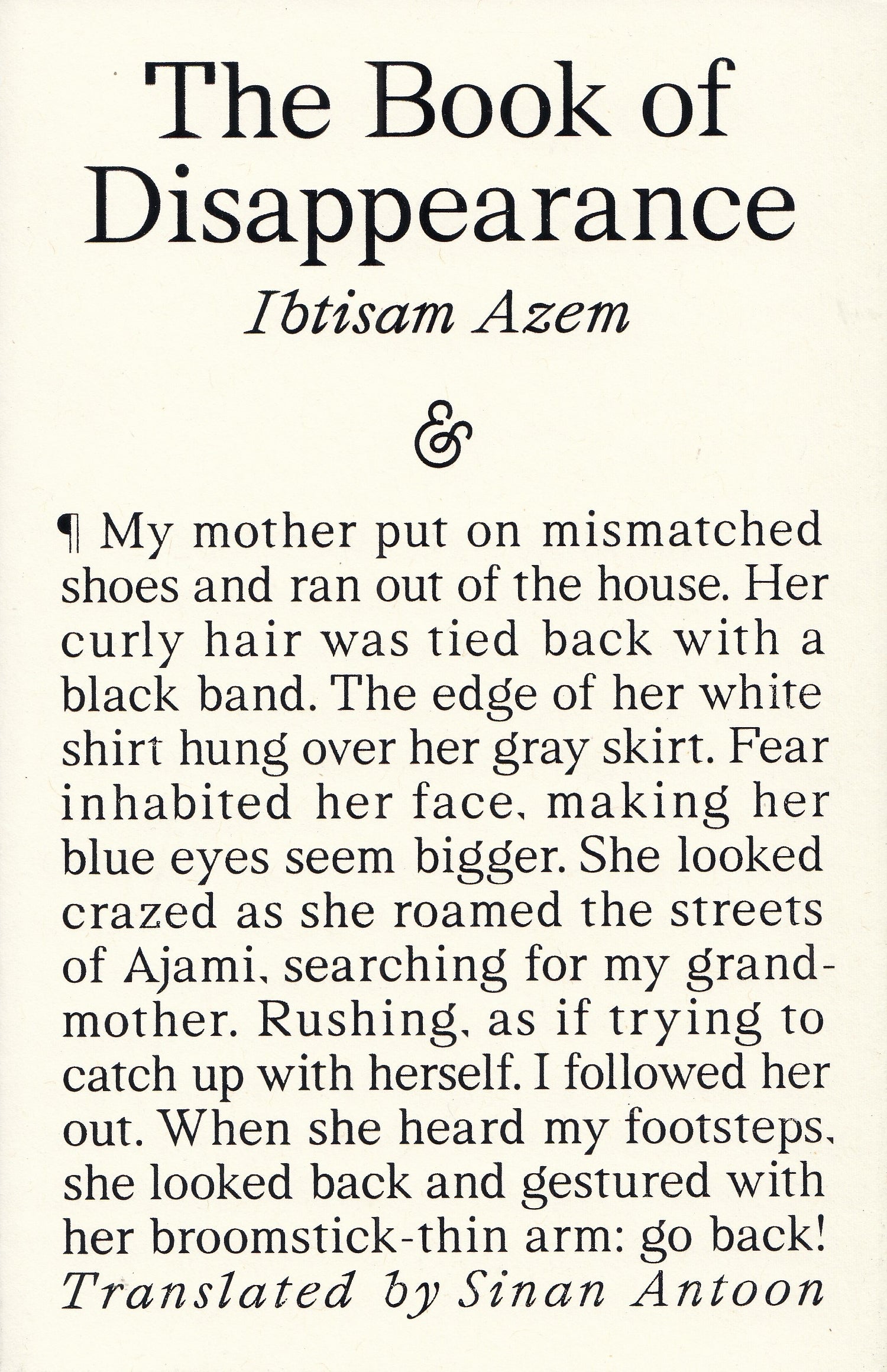 The Book of Disappearance - By. Ibtisam Azem - Translated by. Sinan Antoon