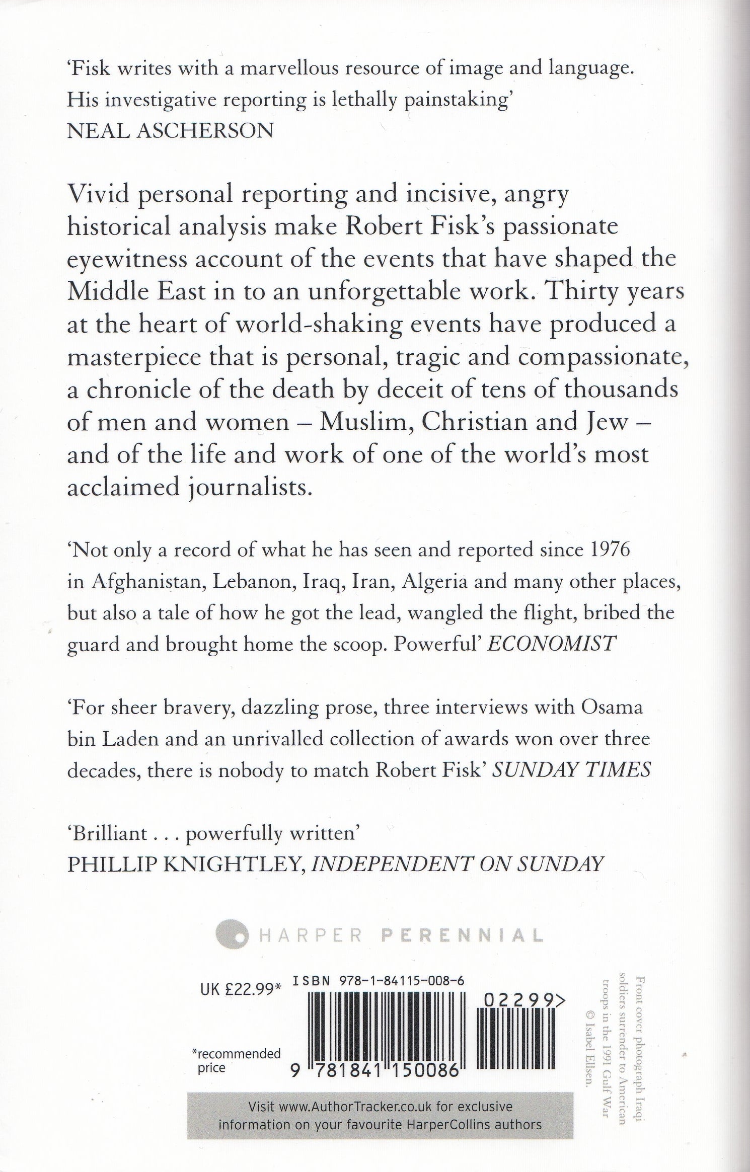 The history of the Middle East is an epic story of tragedy, betrayal and world-shaking events. It is a story that Robert Fisk has been reporting for over thirty years. His masterful narrative spans the most volatile regions of the Middle East, chronicling with both rage and compassion the death by deceit of tens of thousands of Muslims, Christians and Jews.