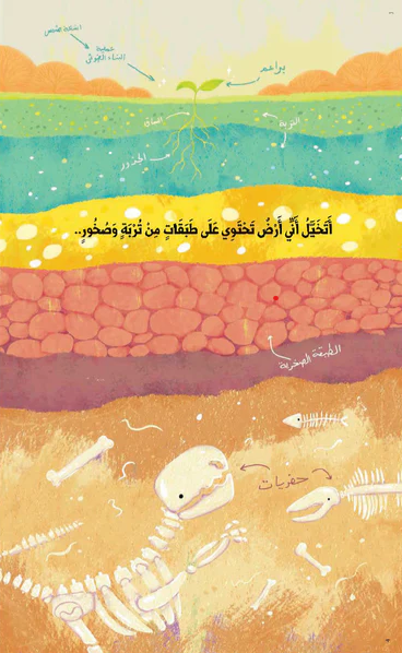 الكتاب فرصة رائعة لدمج خيال الطفل المنطلق مع معلومات علمية عن قشرة الأرض ومركزها حتى جذر الشجرة وبذرتها.