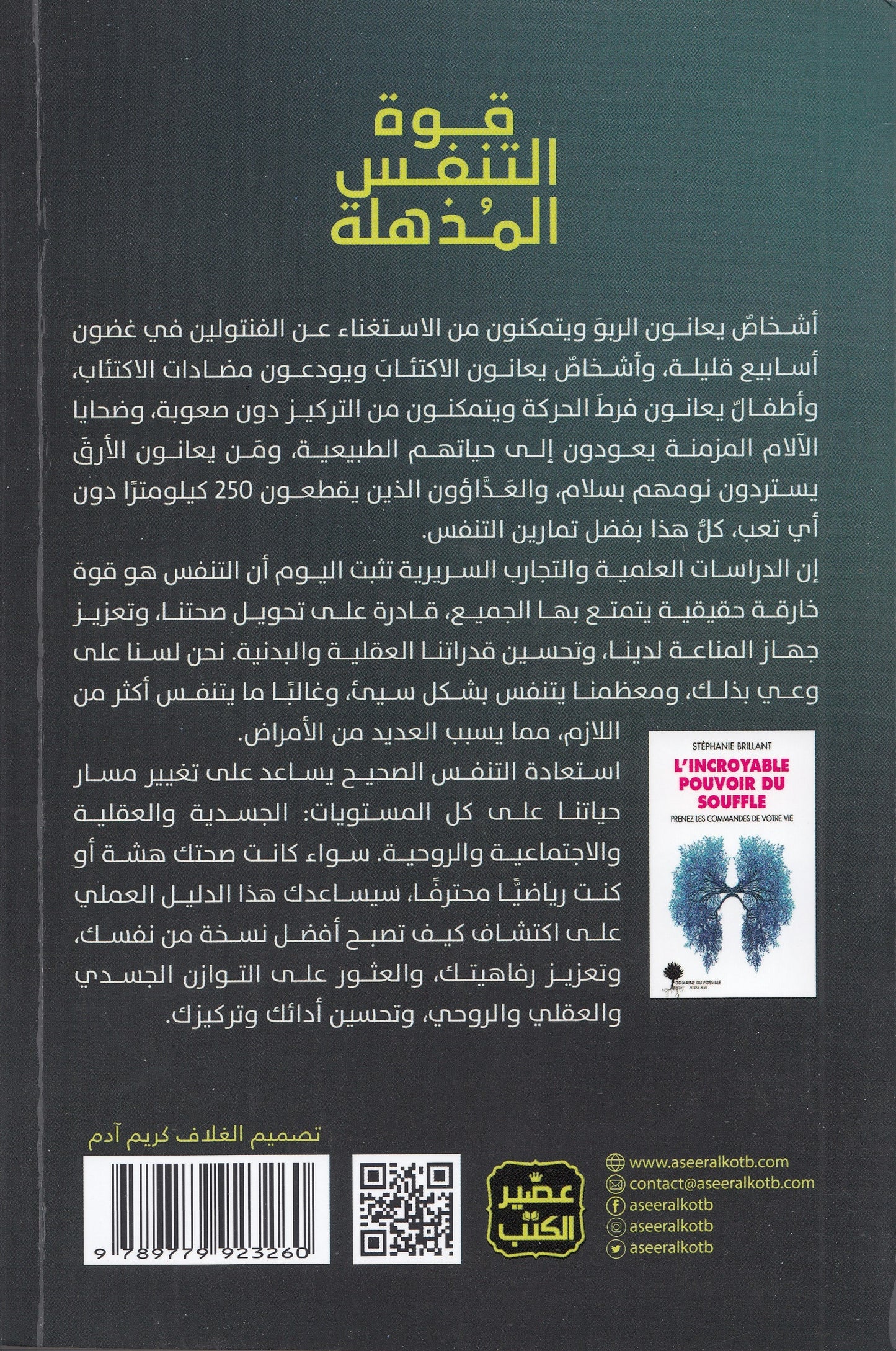 أشخاصٌ يعانون الربوَ ويتمكنون من الاستغناء عن الفنتولين في غضون أسابيع قليلة، وأشخاصٌ يعانون الاكتئابَ ويودعون مضادات الاكتئاب، وأطفالٌ يعانون فرطَ الحركة ويتمكنون من التركيز دون صعوبة، وضحايا الآلام المزمنة يعودون إلى حياتهم الطبيعية، ومَن يعانون الأرقَ يستردون نومهم بسلام، والعَدَّاؤون الذين يقطعون 250 كيلومترًا دون أي تعب، كلُّ هذا بفضل تمارين التنفس. إن الدراسات العلمية والتجارب السريرية تثبت اليوم أن التنفس هو قوة خارقة حقيقية يتمتع بها الجميع، قادرة على تحويل صحتنا، وتعزيز جهاز المناعة لدينا، وتحسين قدراتنا العقلية والبدنية. نحن لسنا على وعي بذلك، ومعظمنا يتنفس بشكل سيئ، وغالبًا ما يتنفس أكثر من اللازم، مما يسبب العديد من الأمراض. استعادة التنفس الصحيح يساعد على تغيير مسار حياتنا على كل المستويات: الجسدية والعقلية والاجتماعية والروحية. سواء كانت صحتك هشة أو كنت رياضيًّا محترفًا، سيساعدك هذا الدليل العملي على اكتشاف كيف تصبح أفضل نسخة من نفسك، وتعزيز رفاهيتك، والعثور على التوازن الجسدي والعقلي والروحي، وتحسين أدائك وتركيزك.