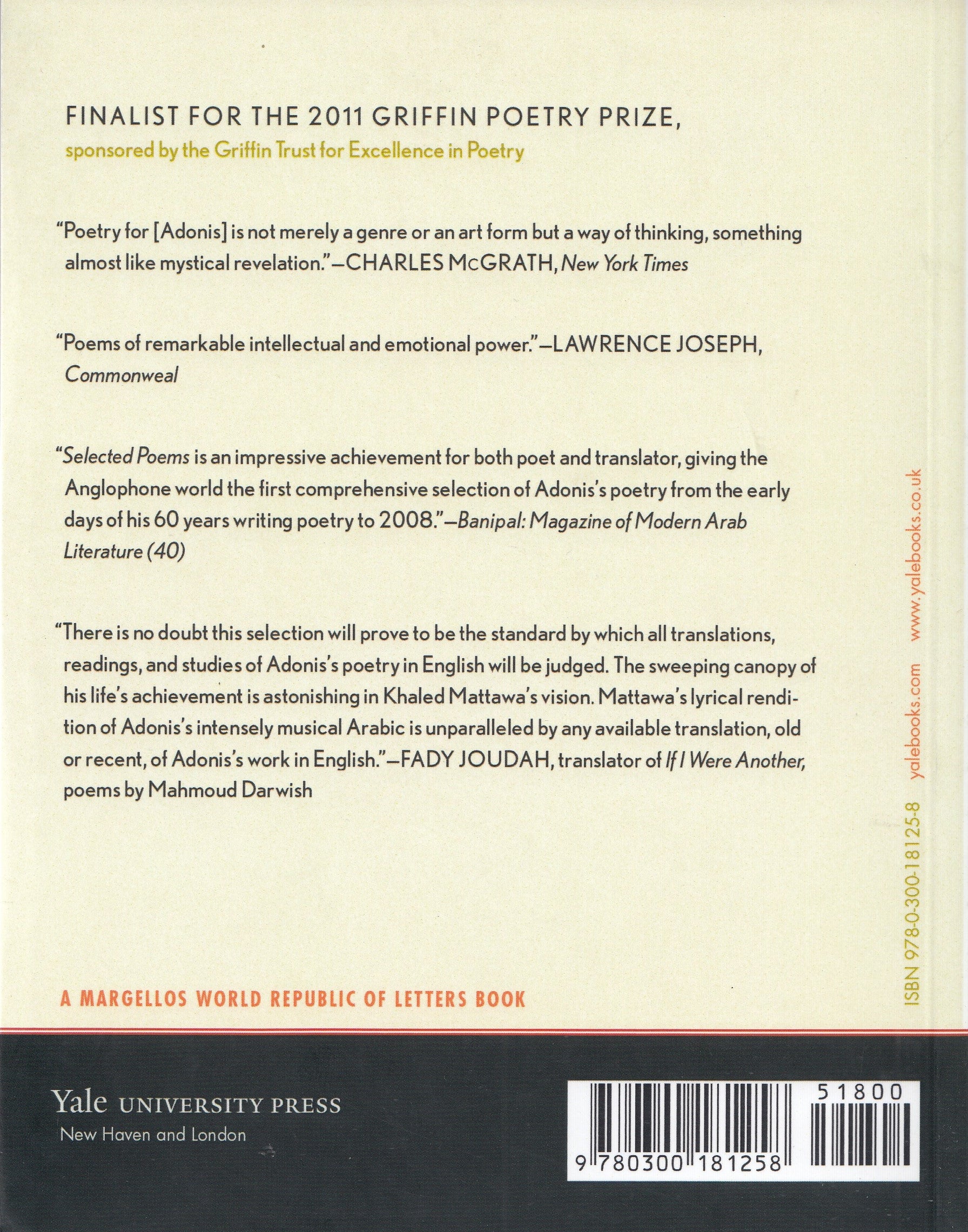 Adonis : Selected Poems - Translated by. Khaled Mattawa