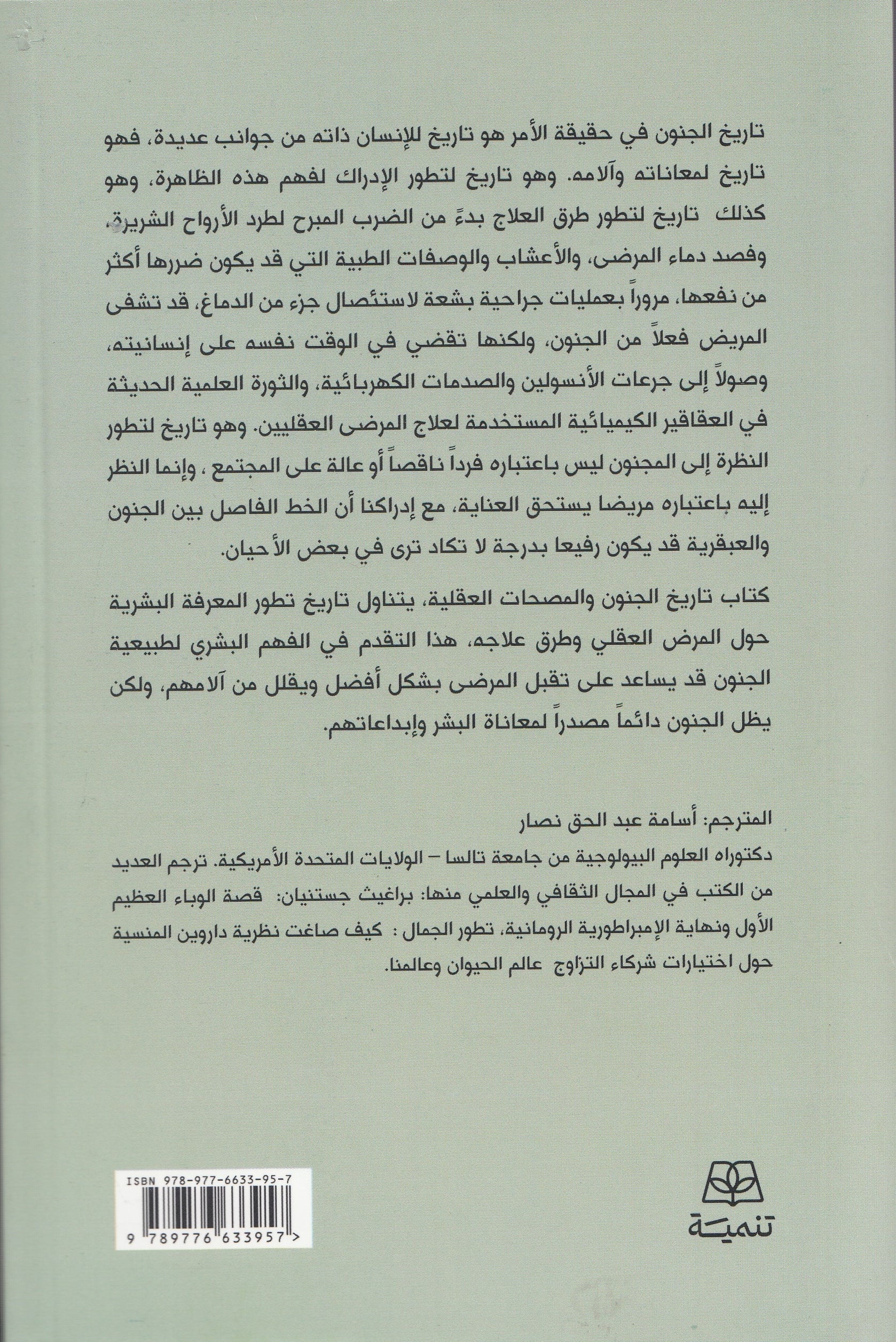 أن تؤرخ للجنون فهذا يعني أنك تؤرخ للإنسان ذاته بمعاناته وآلامه. تفهم ماهية المرض العقلي وطرق علاجه. وتقبل المرضى بشكل يستوعب آلامهم فيرحمهم دون اعتبارهم أفرادًا ناقصين أو عالة على المجتمع. كيف فهمت البشرية الجنون؟ وكيف عالجته؟ في البداية رأته اختلالًا في توازن سوائل الجسم، ثم عقابًا إلهيًا أو مسًا شيطانيًا، قبل أن تظهر المفاهيم الحديثة عن طبيعة المرض العقلي. أما العلاج فبدأ بالضرب المبرح لطرد الأرواح الشريرة، وفصد دماء المرضى، والأعشاب والوصفات الطبية، ثم عمليات جراحية لاستئصال أجزاء من الدماغ وصولاً إلى جرعات الأنسولين والصدمات الكهربائية والعقاقير الكيميائية والمصحات العقلية. صحيح، كيف كان شكل الحياة فيها؟ ولكن.. ألا يظل الجنون مصدرًا لمعاناة البشر وإبداعاتهم على أية حال