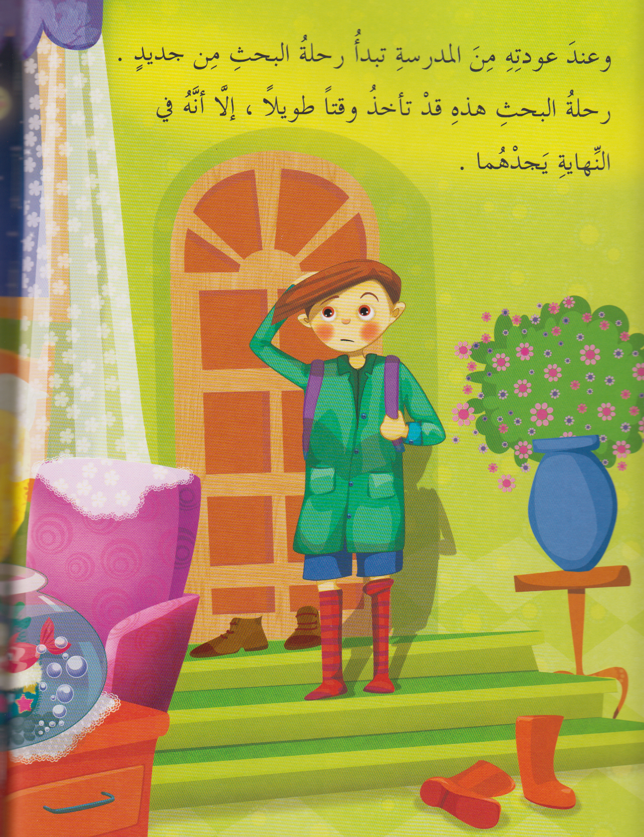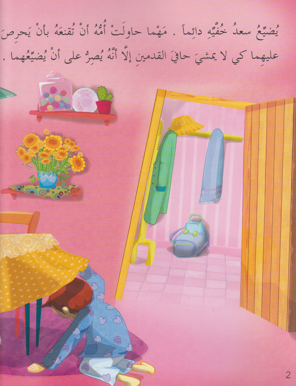 لا يتوقف سعد عن إضاعة خفيه والبحث عنهما، وأحياناً لا يجدهما هو بنفسه، ويضطر للبحث عنهما. مرة ضاع الخفان ولم يجدهما أحد.. أين هما يا ترى؟ ومن سيعثر عليهما؟