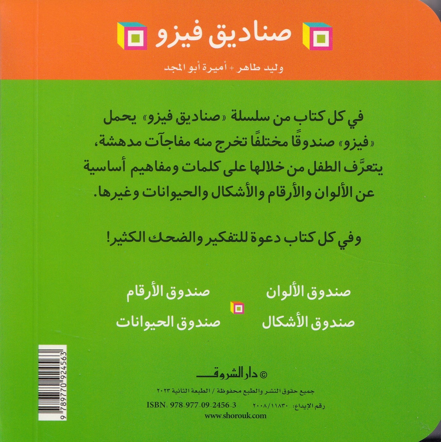 في كل كتاب من سلسلة «صناديق فيزو» يحمل «فيزو» صندوقًا مختلفًا تخرج منه مفاجآت مدهشة، يتعرف الطفل من خلالها على كلمات ومفاهيم أساسية عن الألوان والأرقام والأشكال والحيوانات وغيرها.
